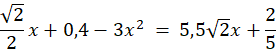 Przenieś wszystkie wyrazy na jedną stronę równania i maksymalnie uprość powstałe wyrażenie. Wyłącz x przed nawias. Skorzystaj z faktu, że iloczyn dwóch liczb jest równy 0, gdy przynajmniej jedna z nich jest równa 0. W otrzymanym wyniku pozbądź się niewymierności z mianownika.