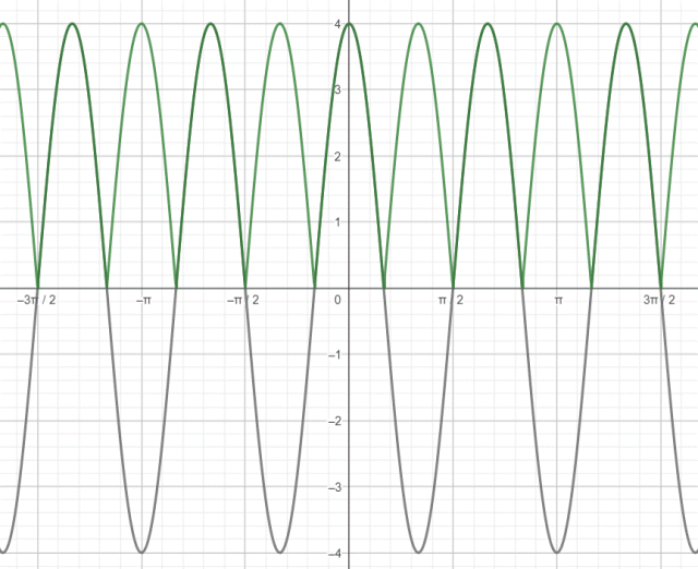 Na koniec wszystkie punkty wykresu znajdujące się pod osią OX odbij symetrycznie względem tej osi.