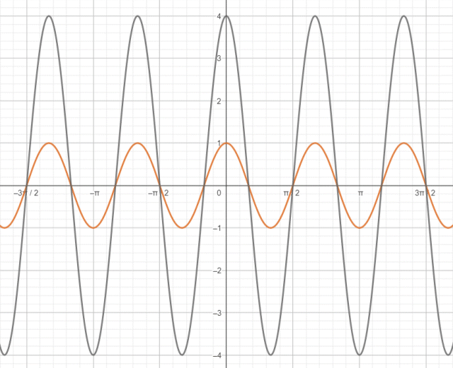 Kolejno przekształć wykres przez powinowactwo o osi OX i skali 4, otrzymując wykres funkcji