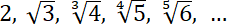 Zauważ, że kolejne wyrazy ciągu odpowiadają pierwiastkom z kolejnych liczb naturalnych, zaczynając od dwa. Stopień pierwiastka odpowiada numerowi wyrazu ciągu. Wzór ogólny ciągu można zapisać jako:
