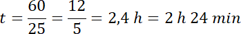 Ustal, ile czasu zajmie rowerzyście pokonanie całego dystansu mającego długość 60 km, jeśli będzie jechał z prędkością 25 km/h.