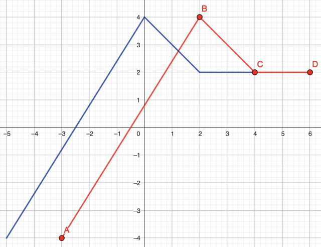 Aby naszkicować wykres funkcji f, połącz punkty ABCD, a następnie przenieś tą funkcję o 2 jednostki w lewo: