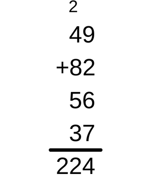 Wykonując dodawanie pisemne najpierw, należy w słupku dodać do siebie cyfry jedności. Jeśli otrzymana liczba jest dwucyfrowa, należy cyfrę jedności takiego wyniku zapisać pod słupkiem cyfr jedności, a cyfrę dziesiątek z wyniku trzeba przenieść dalej poprzez dopisanie tej cyfry nad kolejnym w lewo słupkiem, czyli słupkiem cyfr dziesiątek. Przy dodawaniu kolejnego słupka, do wyniku należy dodać przeniesioną cyfrę ze słupka wcześniej. W taki sam sposób należy dodawać każdy kolejny słupek, zaczynając od lewej i idąc do prawej. Jeśli w ostatnim słupku wyjdzie liczba większa od 10, to już nie wolno przenosić dalej, bo nie ma kolejnego słupka, lecz należy napisać całą liczbę.