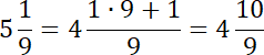 Zamieniając jedną całość na ułamek, w liczniku otrzymasz iloczyn 1 (bo zamieniamy tylko 1 całość) i mianownika, a następnie dodajesz licznik liczby początkowej. Zabieg ten ułatwia wykonywanie odejmowania liczb mieszanych.