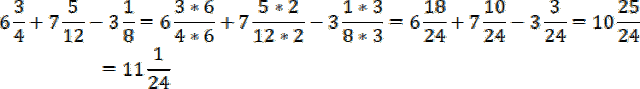 Wspólnym mianownikiem będzie liczba 24. Pamiętaj, aby wynik doprowadzić do postaci nieskracalnej.