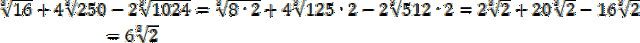 Wyłącz liczbę przed znak pierwiastka, zapisując liczbę pierwiastkowaną jako iloczyn liczb, z których co najmniej jedna ma pierwiastek sześcienny będący liczbą wymierną: