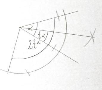 Narysuj półkole przechodzące przez wszystkie ramiona i dwusieczne kąta