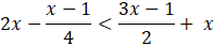 Dla ułatwienia obliczeń powinieneś pomnożyć obie strony nierówności przez 4, czyli najmniejszą wspólną wielokrotność mianowników w ułamkach nierówności. Odejmując zawartość nawiasu pamiętaj o zmianie znaku ich wartości na przeciwne. Następnie, przenieś wszystkie wartości z „x” na jedną stronę nierówności, natomiast liczby na przeciwną stronę. Na sam koniec, podziel obie strony nierówności przez 3.