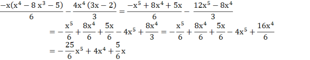 Wykonaj mnożenie w licznikach. Następnie wykonaj dzielenie, aby otrzymać współczynniki przy poszczególnych potęgach. Aby móc przedstawić wynik w postaci uporządkowanego wielomianu musisz sprowadzić współczynniki przy potęgach do wspólnych mianowników i potem wykonać dodawanie i odejmowanie.