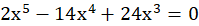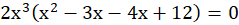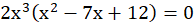 W pierwszej kolejności wyłączasz przed nawias najwyższą wspólną potęgę zmiennej razem z najwyższym wspólnym dzielnikiem współczynników przy zmiennych. Następnie porządkujesz wyrażenie w nawiasie w sposób umożliwiający wyłączenie przed nawias wspólnego czynnika. Wówczas otrzymujesz postać iloczynową, z której bezpośrednio odczytujesz pierwiastki równania.