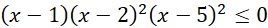 jest w nieparzystej potędze). Pamiętaj, że 2 nie należy do dziedziny wyrażenia, dlatego musisz wyrzucić tę liczbę ze zbioru rozwiązań, dodatkowo w 2 i 5 odbijasz wykres ze względu na to, że są to miejsca zerowe o parzystej potędze.