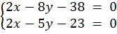 Z pierwszego równania wylicz 2x, a następnie podstaw do drugiego równania.
