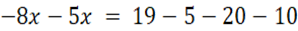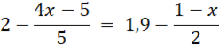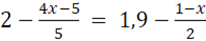 Należy pomnożyć równanie przez 10, by pozbyć się ułamków, następnie należy pomnożyć różnice algebraiczne przez liczby poprzedzające ich nawiasy, następnie należy przenieść niewiadome na lewą stronę równania a liczby na prawą stronę równania. Na koniec dzielimy równanie przez liczbę stojącą przy x.