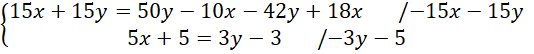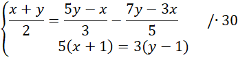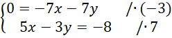 Każde z równań przedstaw w najprostszej postaci. Zauważ, że całe pierwsze równanie należy pomnożyć przez (-3), a drugie przez 7, aby współczynniki znajdujące się przy