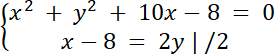 x2 + (0,5x–4)2 + 10x–8 = 0