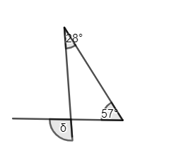 Aby obliczyć miarę kąta δ, musisz pamiętać od 180° odjąć 28° i 57⁰.