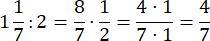 Aby wykonać to dzielenie, należy liczbę mieszaną zamienić na ułamek niewłaściwy i pomnożyć przez odwrotność liczby.