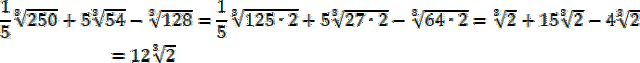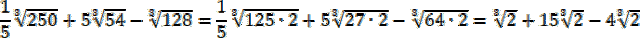 Wyłącz liczbę przed znak pierwiastka, zapisując liczbę pierwiastkowaną jako iloczyn liczb, z których co najmniej jedna ma pierwiastek sześcienny będący liczbą wymierną: