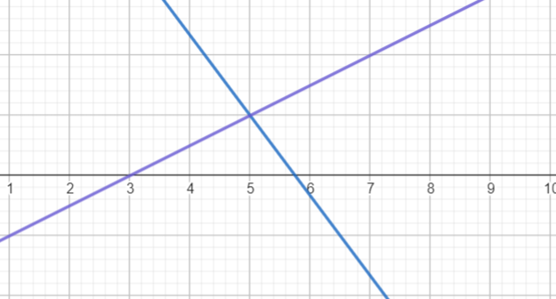 x = 5, y = 1, układ oznaczony