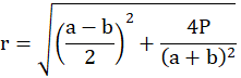 Oznacz wierzchołki trapezu równoramiennego, zgodnie ze wskazówkami zegara zaczynając od dolnego lewego boku jako A, B, C, D. Spadek wysokości h z wierzchołka D oznacz punktem E, a spadek wysokości z punktu C oznacz jako F. Odcinek |AD| = |CB| = r |AB| = a i |DC| = b