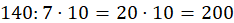 Podziel 140 przez 7 i pomnóż przez 10: