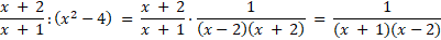 Zapisz dzielenie jako mnożenie przez odwrotność, a następnie wykonaj mnożenie upraszczając licznik z mianownikiem i używając wzoru skróconego mnożenia