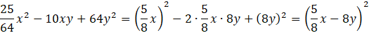 W tym zadaniu musisz zapisać podane wyrażenie w postaci (a + b)2 lub (a – b)2.
