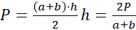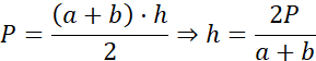W tym zadaniu należy zapisać wzór, za pomocą którego można obliczać obwód trapezu równoramiennego o danych podstawach a, b (a > b) oraz polu P.