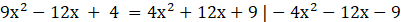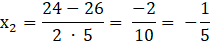 Przenosimy wszystkie wyrażenia na jedną stronę równości i obliczamy pierwiastki powstałego w ten sposób równania kwadratowego