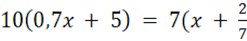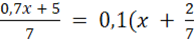 Należy pomnożyć równanie przez 70, by pozbyć się ułamków. Następnie należy pomnożyć sumy algebraiczne przez liczby poprzedzające ich nawiasy, a następnie należy przenieść niewiadome na lewą stronę równania a liczby na prawą stronę równania, otrzymamy 0x = -48 co nie jest prawdą, więc równanie jest sprzeczne.