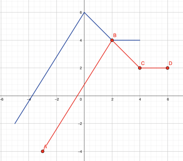 Aby naszkicować wykres funkcji f, połącz punkty ABCD, a następnie przenieś tą funkcję o 2 jednostki w górę oraz o 2 jednostki w lewo: