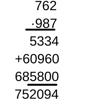 Wykonując mnożenie pisemne przez liczbę wielocyfrową, należy najpierw pomnożyć cyfrę jedności liczby, przez którą mnożysz, przez cyfrę jedności drugiej liczby. Jeśli otrzymana liczba jest dwucyfrowa, należy cyfrę jedności takiego wyniku zapisać pod słupkiem cyfr jedności, a cyfrę dziesiątek z wyniku trzeba przenieść dalej poprzez dopisanie tej cyfry nad kolejnym w lewo słupkiem, czyli słupkiem cyfr dziesiątek. Przy mnożeniu kolejnego słupka, do wyniku dodaje się przeniesioną cyfrę ze słupka wcześniej. W taki sam sposób należy mnożyć każdą kolejną cyfrę, zaczynając od lewej i idąc do prawej. Jeśli w ostatnim słupku wyjdzie liczba większa od 10, to już nie wolno przenosić dalej, bo nie ma kolejnego słupka, lecz należy napisać całą liczbę. Po pomnożeniu przez cyfrę jedności należy wykonać te same operacje, mnożąc przez kolejne cyfry, zaczynając od dziesiątek. Z każdą kolejną cyfrą, przez którą mnożysz w sekcji dodawania, dopisuj z prawej strony jedno zero. Na końcu wykonaj dodawanie pisemne. Dodawaj kolejno każdy ze słupków, począwszy od jedności, a gdy po dodaniu wynik będzie dwucyfrowy, to liczbę jedności zapisz pod tym słupkiem, a liczba dziesiątek przejdzie dalej do następnego słupka.