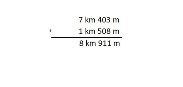 W tym zadaniu musisz wykonać dodawanie: 7 km 403 m + 1 km 508 m.