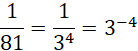 Zastanów się jaką podstawę musi mieć potęga o wykładniku -4, aby wynikiem potęgowania była