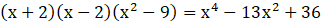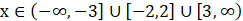 Współczynnik przy najwyższej (parzystej), potędze jest dodatni więc wykres zaczynamy rysować z lewej górnej części układu współrzędnych. Odbija się on w punktach będącymi miejscami zerowymi o parzystych krotnościach, a w pozostałych przecina oś. Opisujemy przedział, który znajduje się nad osią OX wraz z miejscami zerowymi.