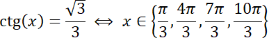 Cotangens ma pierwiastki dla argumentów, które spełniają równanie: