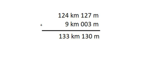 W tym zadaniu musisz wykonać dodawanie: 124 km 127 m + 9 km 003 m.