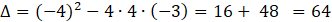 Przenosimy wszystkie wyrażenia na jedną stronę równości i obliczamy pierwiastki powstałego w ten sposób równania kwadratowego