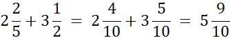 Rozszerz ułamki do mianownika 10 i wykonaj odejmowanie. . Liczby całkowite znajdujące się przed ułamkami dodaj do siebie niezależnie od ułamków.