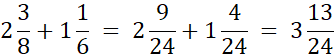 Rozszerz ułamki do mianownika 48 i wykonaj dodawanie. Liczby całkowite znajdujące się przed ułamkami dodaj do siebie niezależnie od ułamków.