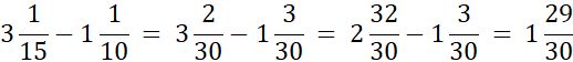 Rozszerz ułamki do mianownika 30 i wykonaj odejmowanie. Liczby całkowite znajdujące się przed ułamkami odejmij od siebie niezależnie od ułamków.
