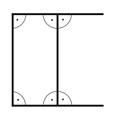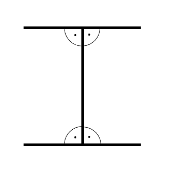 Za pomocą trzech i czterech patyczków stwórz jak najwięcej kątów prostych tak, by patyczki się nie krzyżowały.