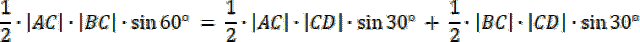 |∡ACD| = |∡DCB| = 0,5∙60°