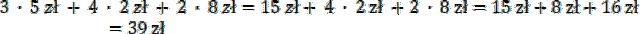 Zapisz wyrażenie na całkowity koszt zakupów i policz, ile reszty dostał Franek.