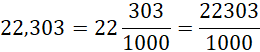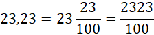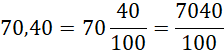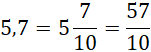 Znajdź liczbę dziesiętną, liczbę mieszaną o takiej samej wartości jest liczba o takiej samej liczbie całości i ułamku zwykłym, w liczniku którego znajduje się liczba stojąca za przecinkiem, a w mianowniku – jedynka i tyle zer, ile cyfr po przecinku ma liczba dziesiętna. Aby otrzymać ułamek niewłaściwy, pomnóż liczbę całości przez mianownik i dodaj wynik do liczby z licznika.