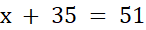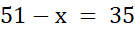 Długość wstążki na rysunku to 51 cm. Znasz tylko kawałek długości wstążki, czyli 35 cm. Reszta wstążki to Twoja niewiadoma x. Poprawnie ułożone równanie to: