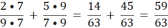 Przypomnienie: aby dodawać ułamki, muszą mieć one wspólny mianownik. W tym przypadku będzie to iloczyn 9 i 7.
