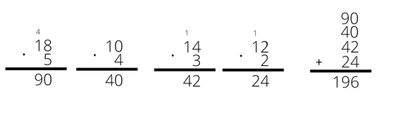 (18 ∙ 5) + (10 ∙ 4) + (14 ∙ 3) + (12 ∙ 20) = 90 + 40 + 42 + 24 = 196