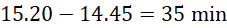 Od 14.45 do 15. 00 mija 15 min, a od 15.00 do 15.20 mija 20 minut, a więc 15 minut + 20 minut daje 35 minut.