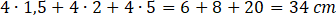 Podaj wymiary prostopadłościanu powstałego ze złożenia dwóch graniastosłupów. Oblicz sumę długości krawędzi prostopadłościanu.